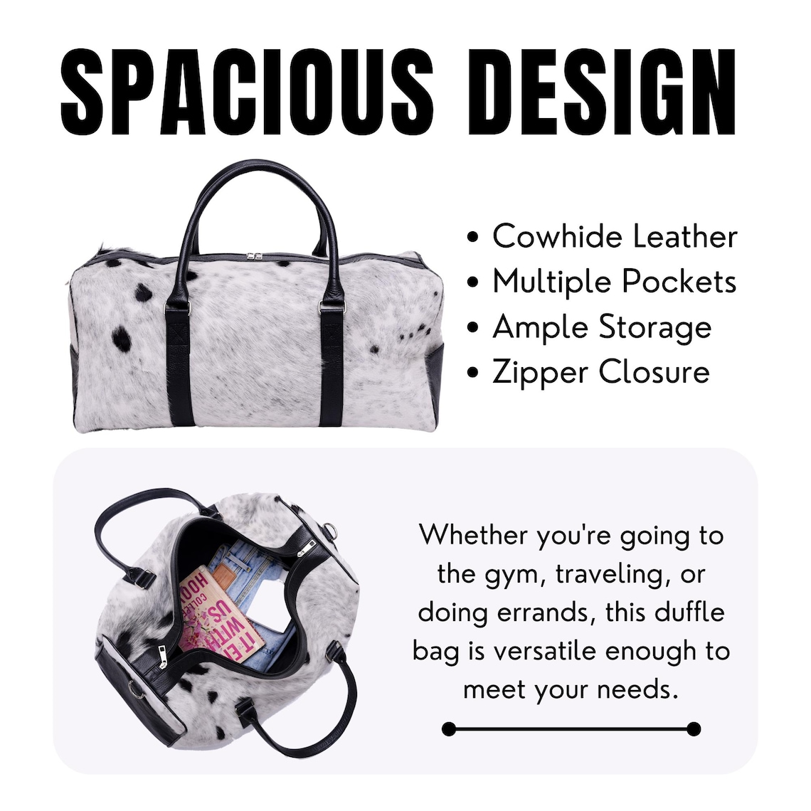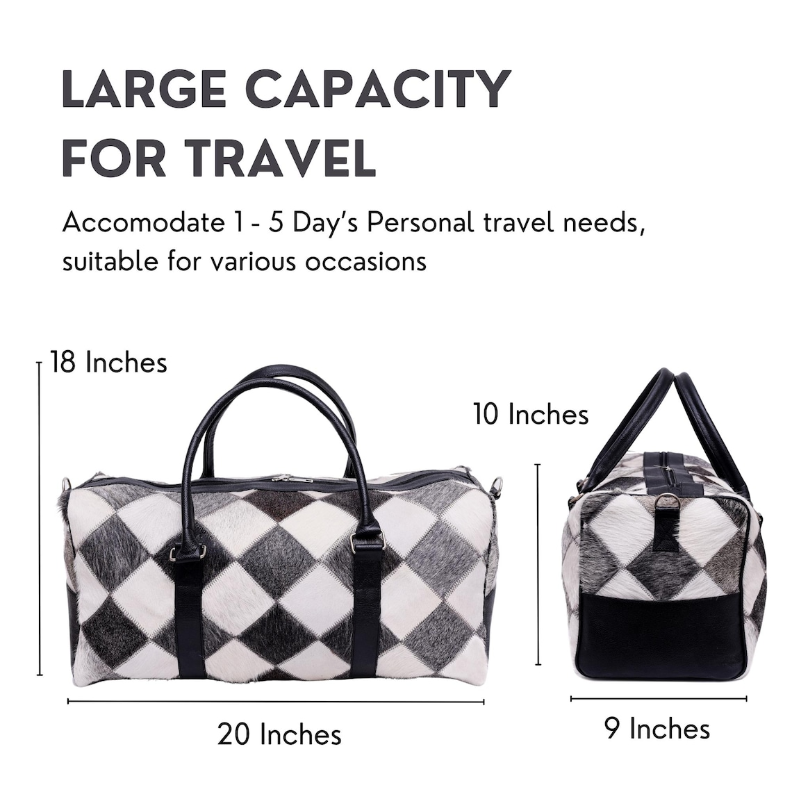 - Timeless Style: The classic cowhide design complements any travel ensemble.