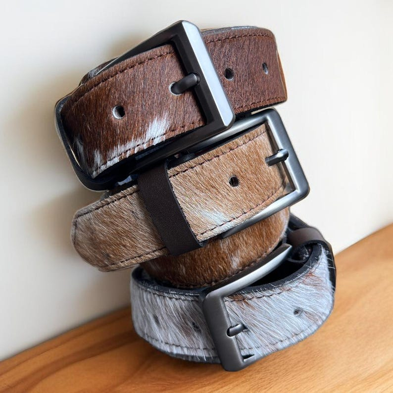Embrace individuality with our handcrafted cowhide belts! Each belt is made from genuine cowhide, showcasing unique natural patterns and textures. The color theme will remain consistent, but the pattern will vary due to the natural nature of the hide.